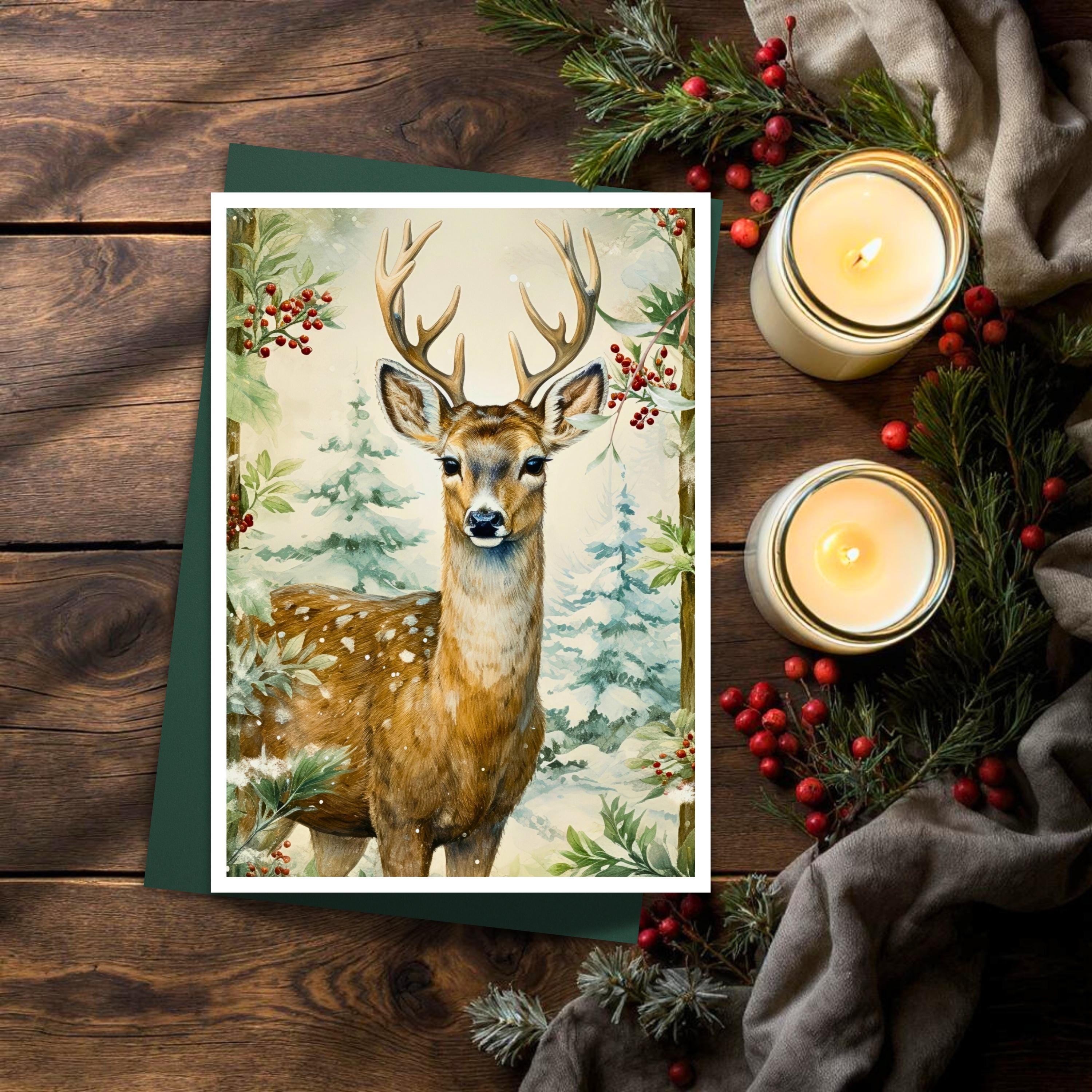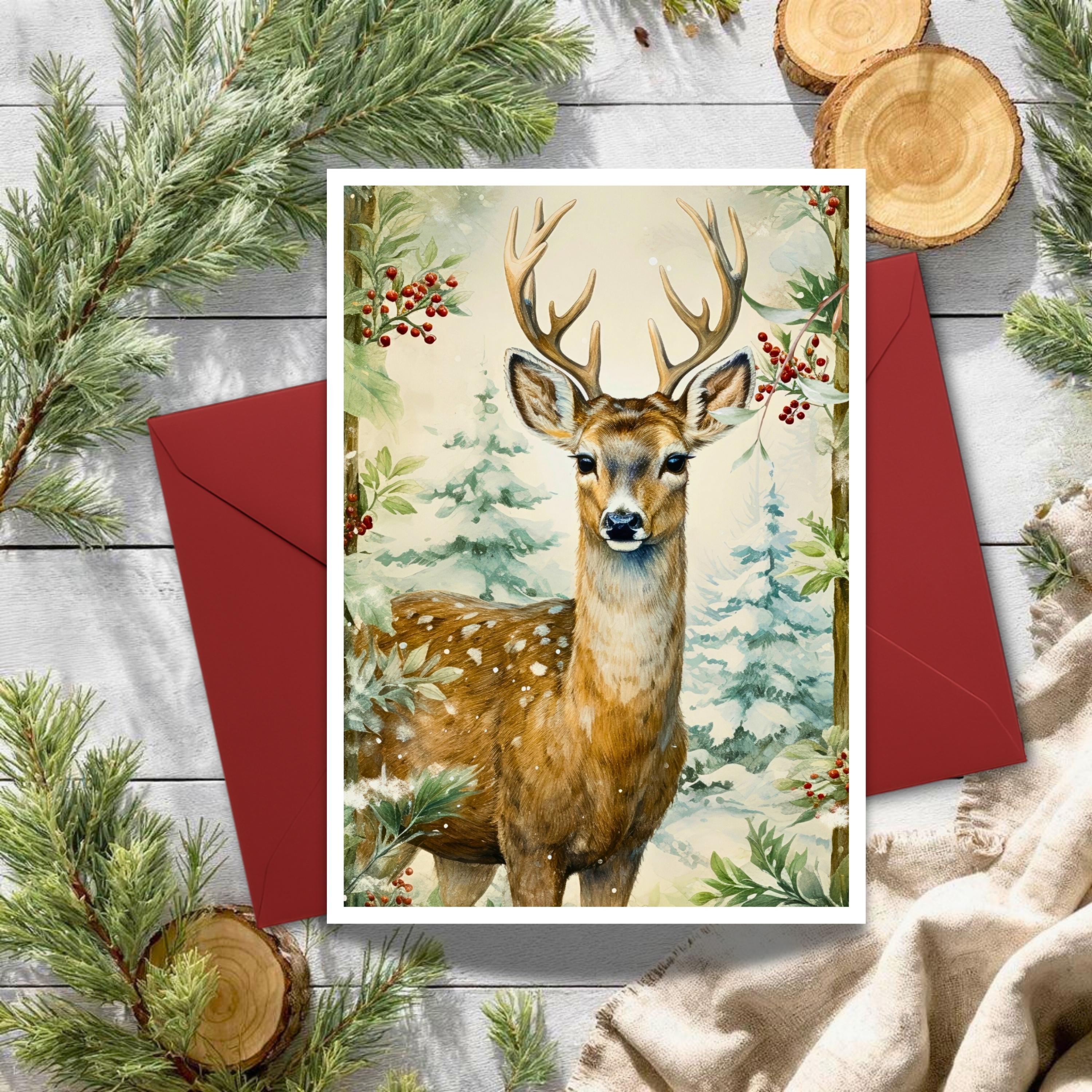 Embrace the serene beauty of winter with our Rustic Vintage Greeting Card, featuring a charming illustration of a deer in a snowy forest. Printed on high-quality cardstock, this card captures the tranquil essence of nature with its detailed, nostalgic design. Perfect for any occasion, it comes with a matching kraft envelope, adding a touch of rustic elegance. Send warm wishes and a bit of woodland magic to your loved ones with this timeless, enchanting card.