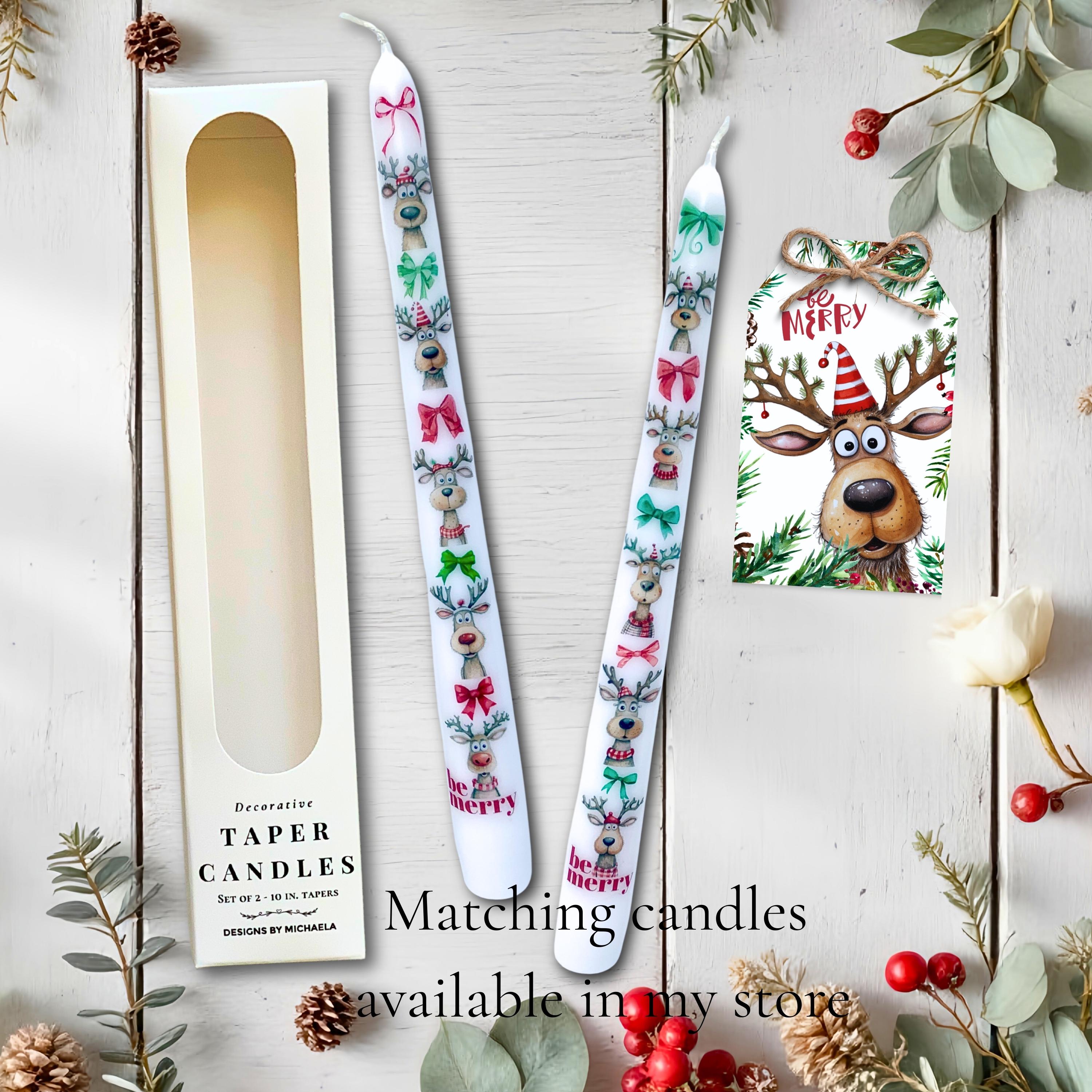 Matching Candlesticks can be found here: https://designsbymichaelaaz.etsy.com/listing/1758003292/be-merry-reindeer-christmas-taper-candle