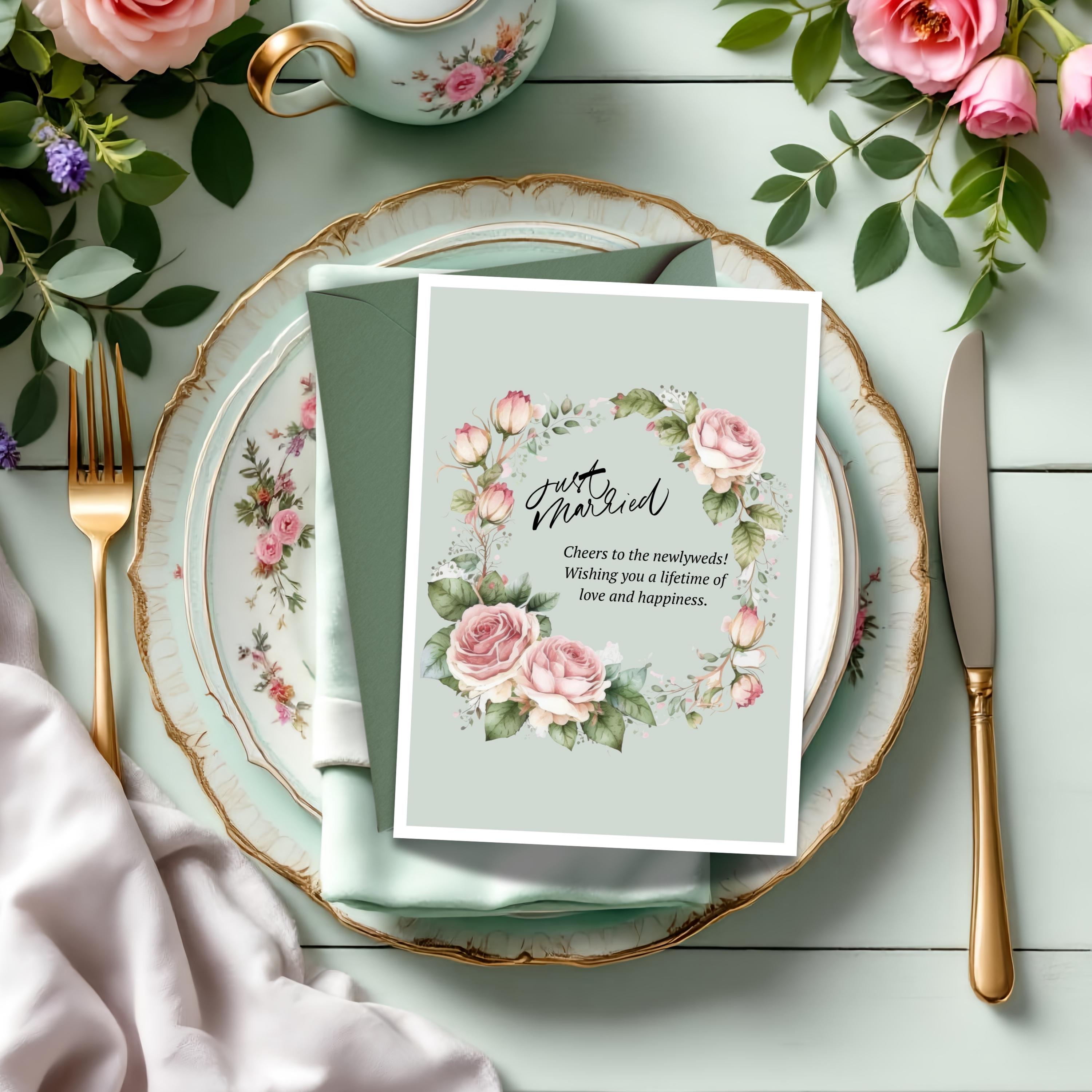 Celebrate the joyous union of newlyweds with our exquisite Watercolor Just Married Congratulations Card. Featuring sweet sentiments of support beautifully encircled by a delicate floral bouquet, this card is a heartfelt way to send your best wishes. Printed on premium quality cardstock to ensure a lasting keepsake, and paired with a rustic Kraft envelope, this card is the perfect blend of elegance and charm for the happy couple.