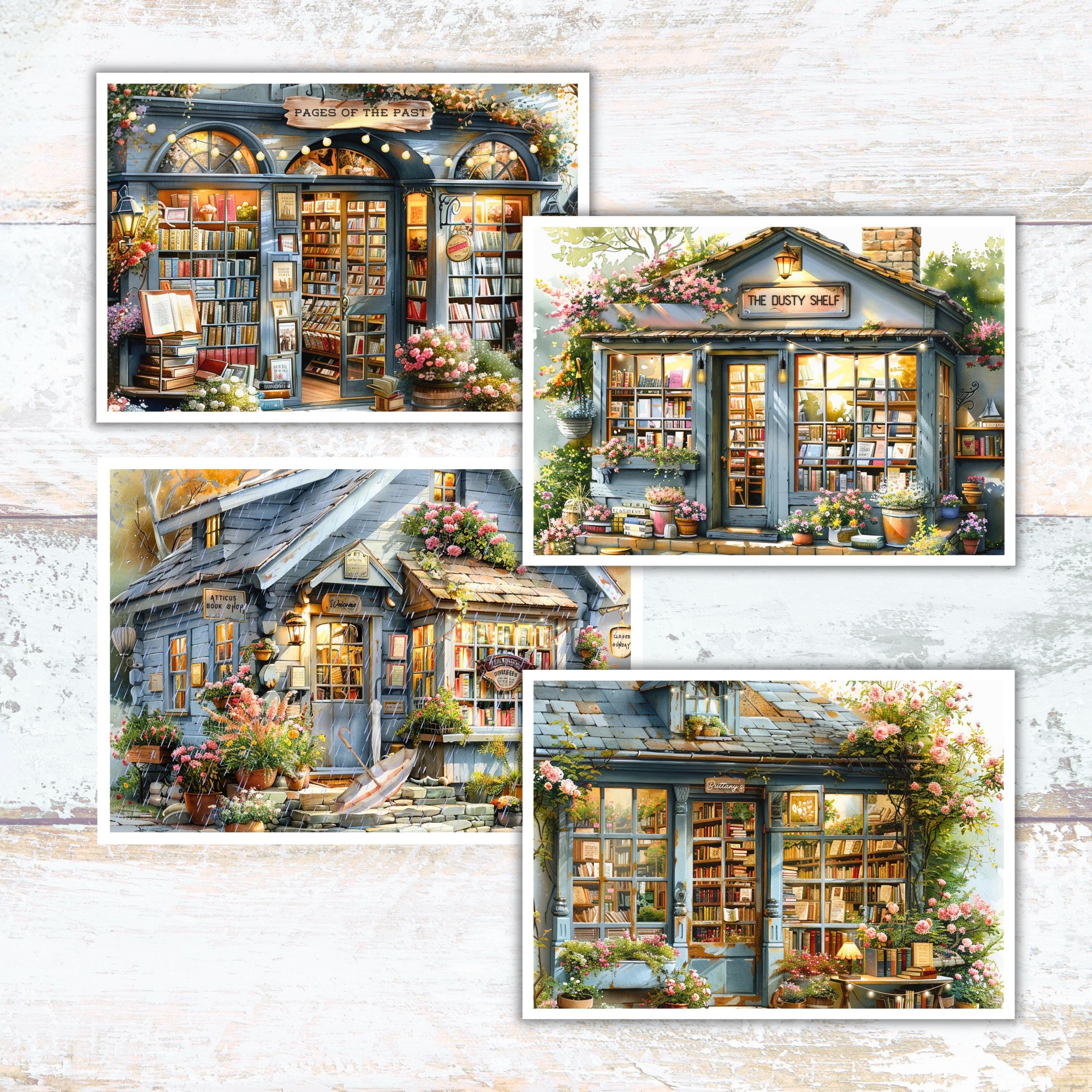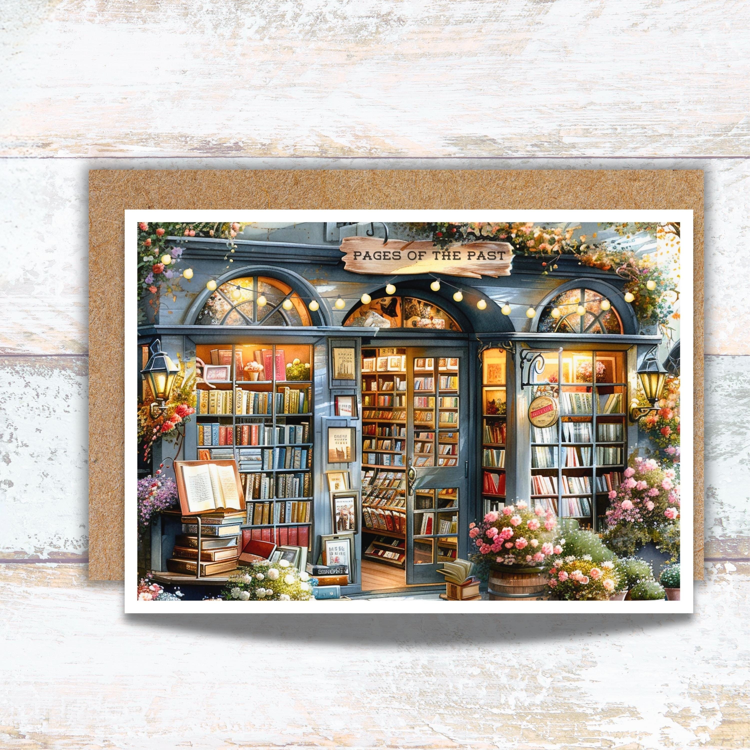 Delight in the charm of classic literature with this stunning set of four greeting cards, each featuring a beautifully illustrated vintage bookstore. From cozy windows and overflowing bookshelves to lush florals and timeless architectural details, every design captures the magic of a book lover’s dream escape.