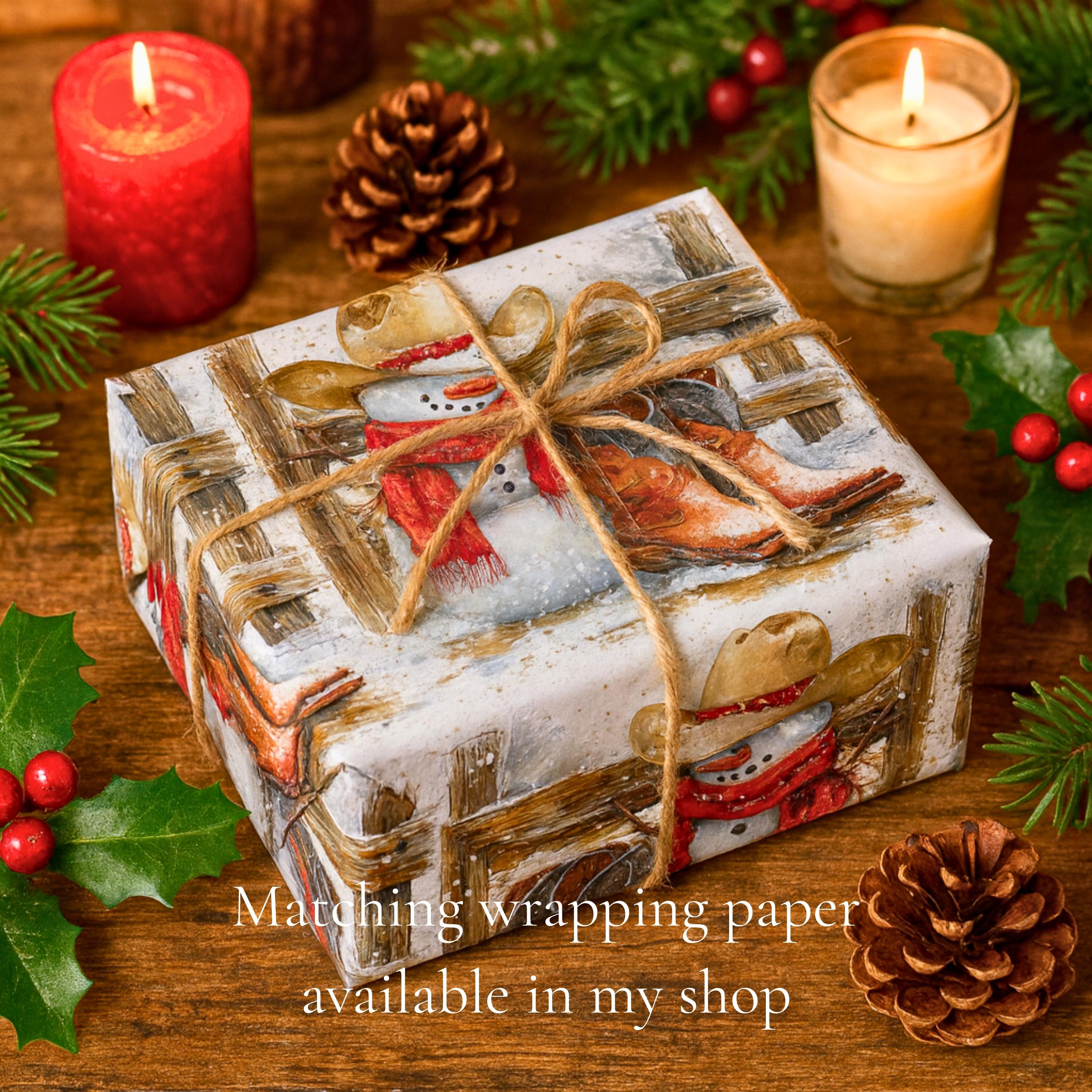 For matching wrapping paper, please follow this link: https://designsbymichaelaaz.etsy.com/listing/4372244479/cowboy-snowman-wrapping-paper-roll