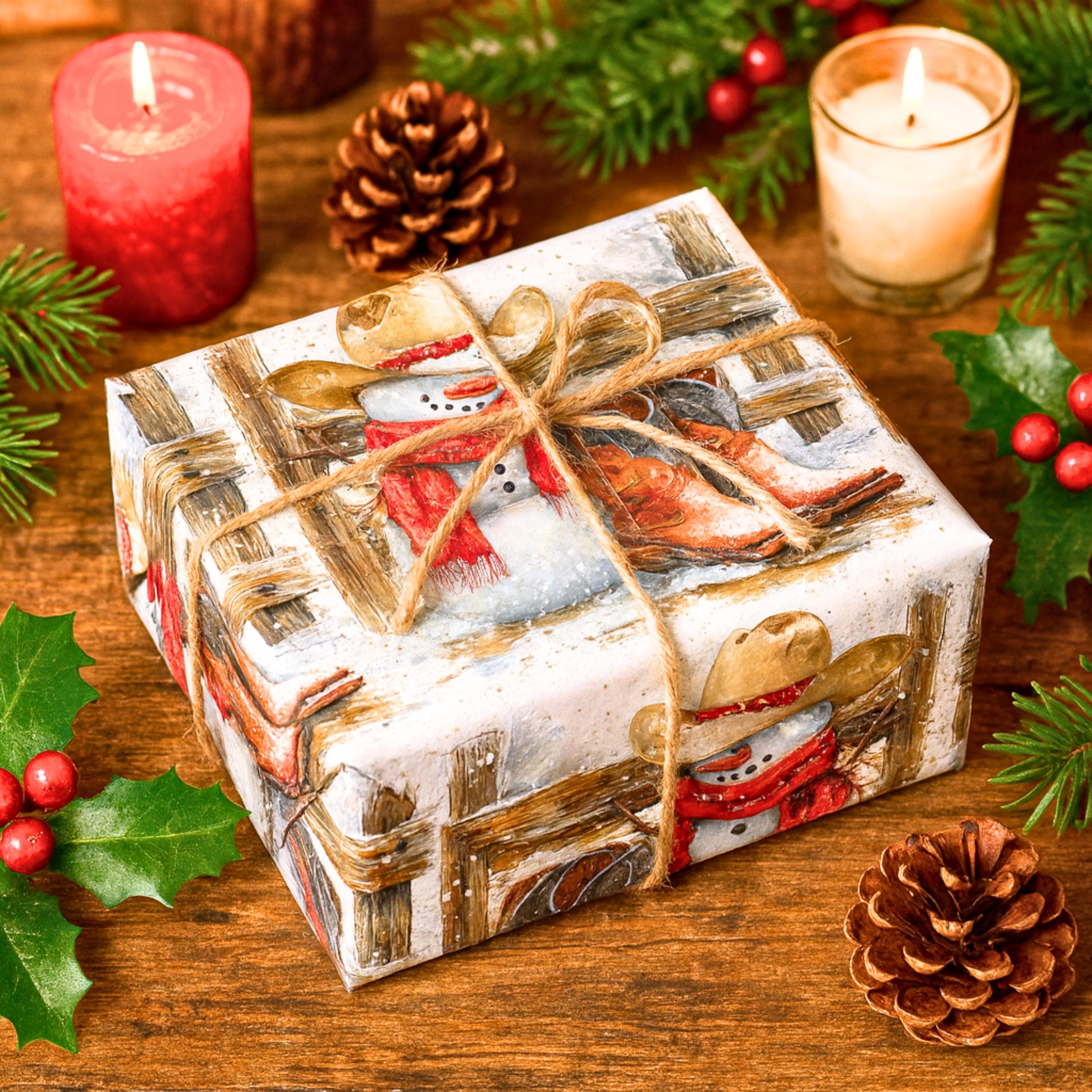 Wrap your gifts in a design as unique as the season — add a little country Christmas cheer with our Cowboy Snowman Wrapping Paper!