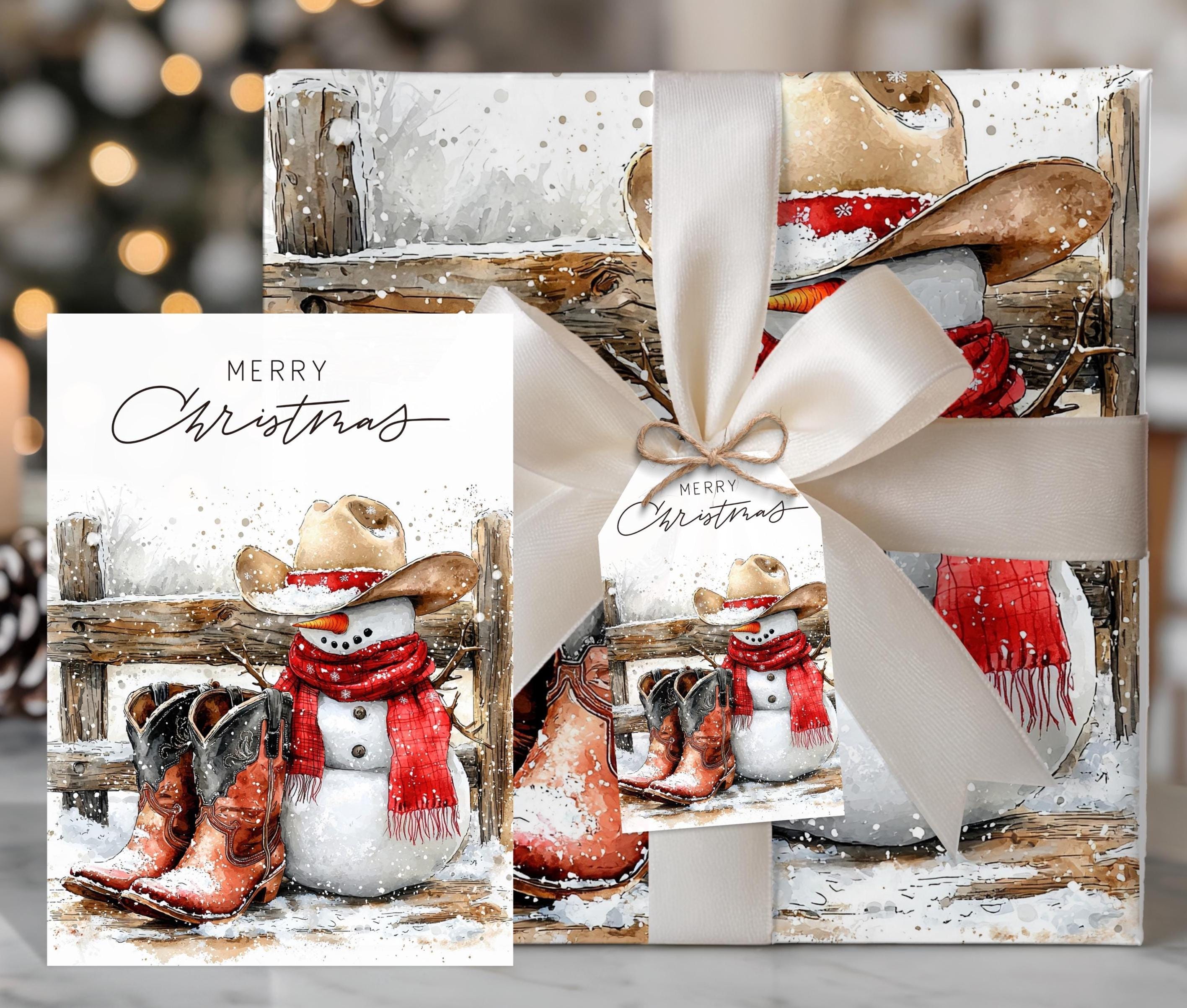 For matching stationery, please follow this link:https://designsbymichaelaaz.etsy.com/listing/4341831876/cowboy-snowman-christmas-card-western