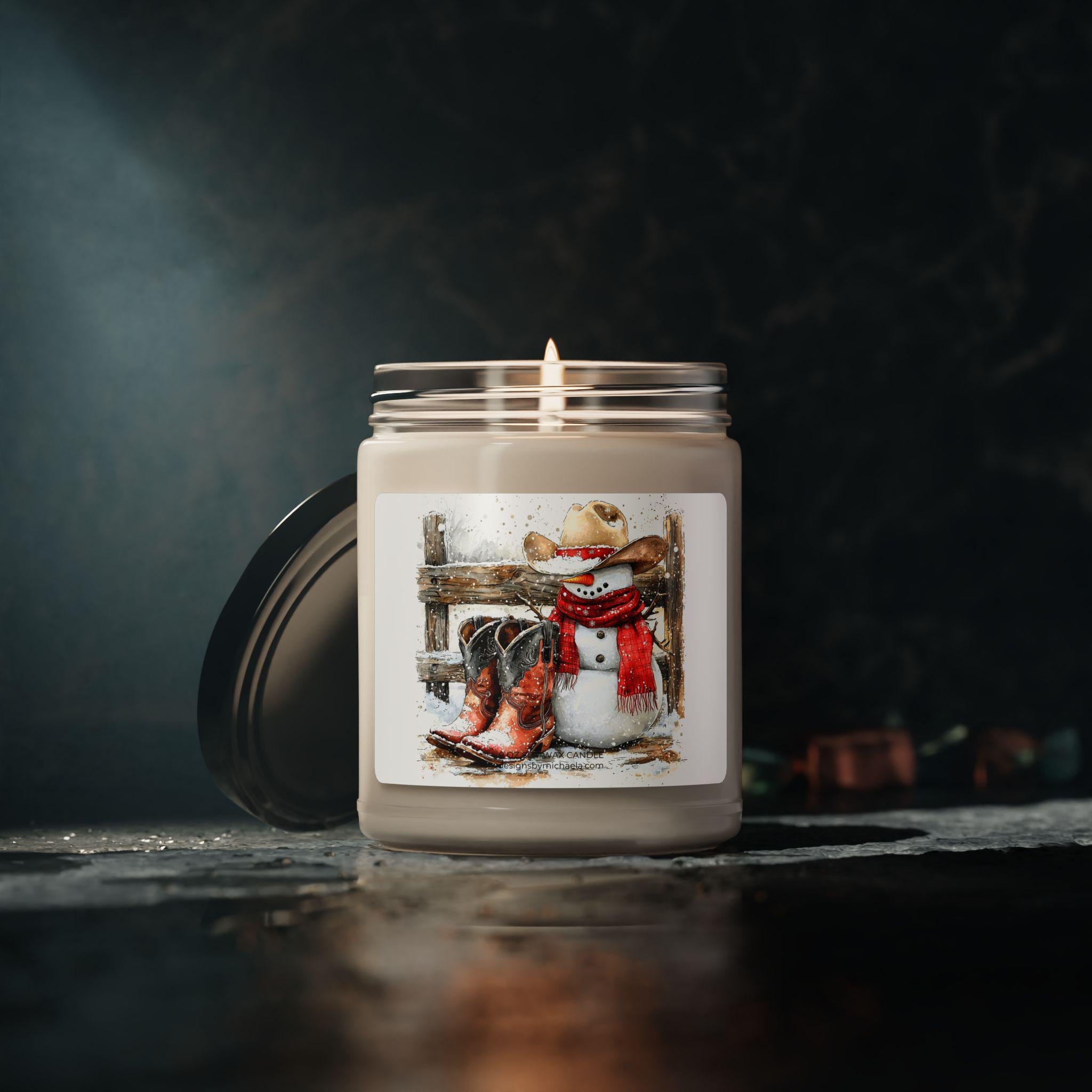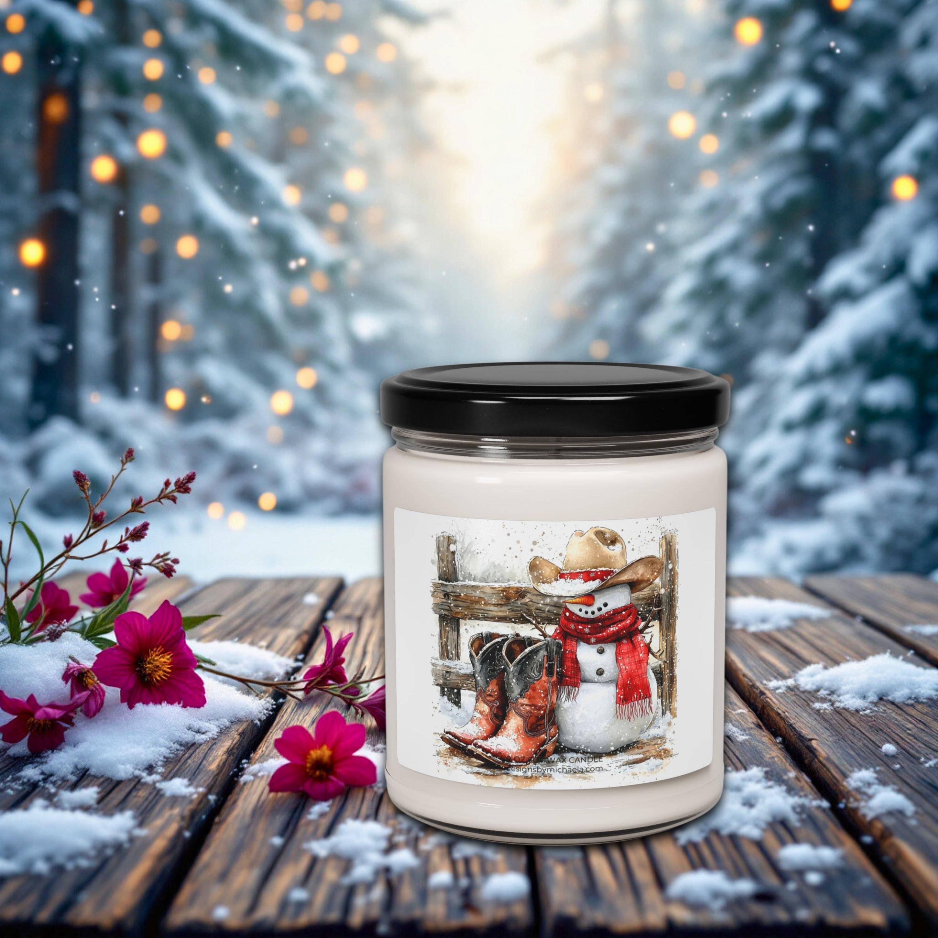 Saddle up for holiday cheer with our Cowboy Snowman scented soy candle! This festive design combines the rustic charm of the Wild West with the cozy magic of Christmas. As the flame flickers, let the fragrance transport you to a winter wonderland where country spirit meets holiday joy. Perfect for those who love Western flair, Christmas traditions, or just a touch of whimsy, this candle makes a delightful gift for friends, family, and snowman collectors alike.