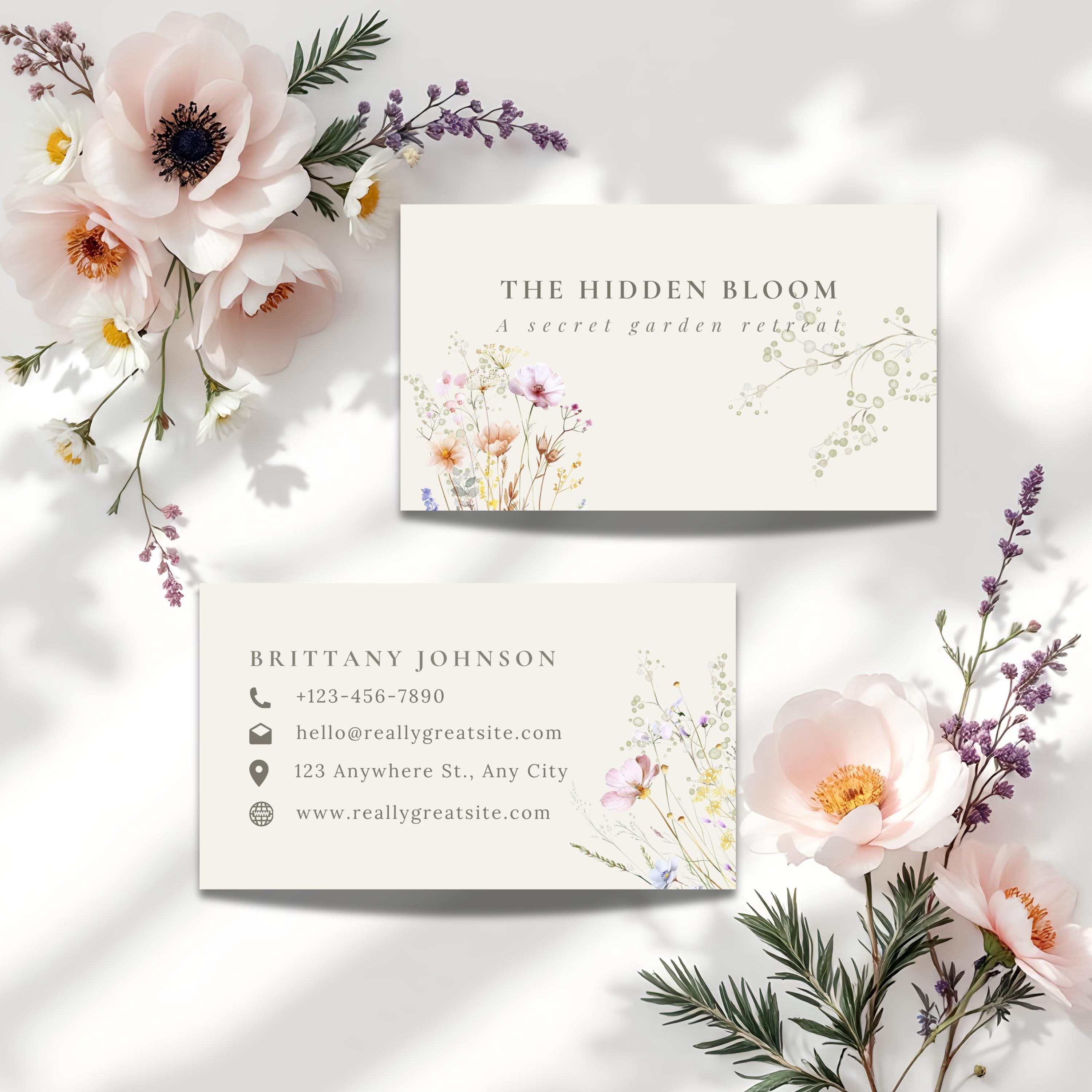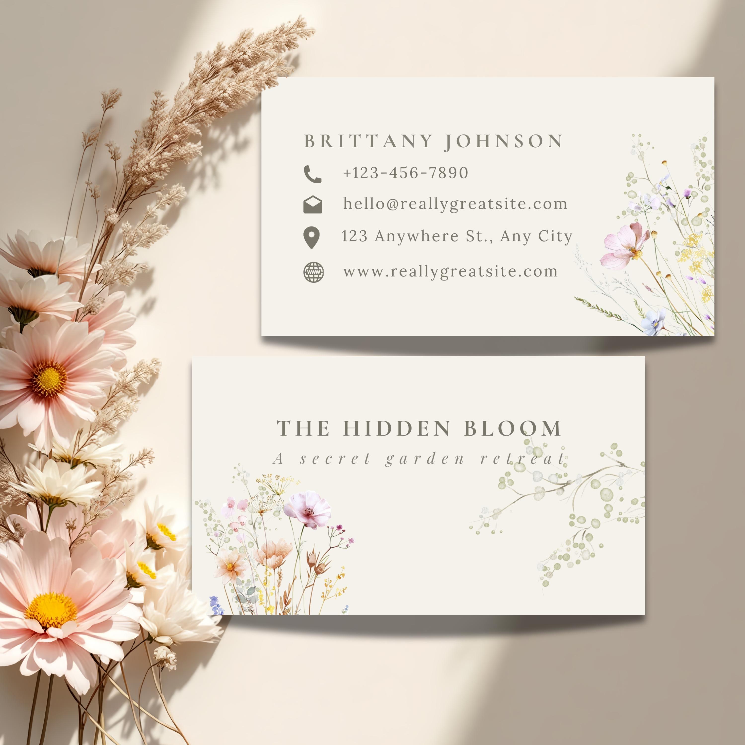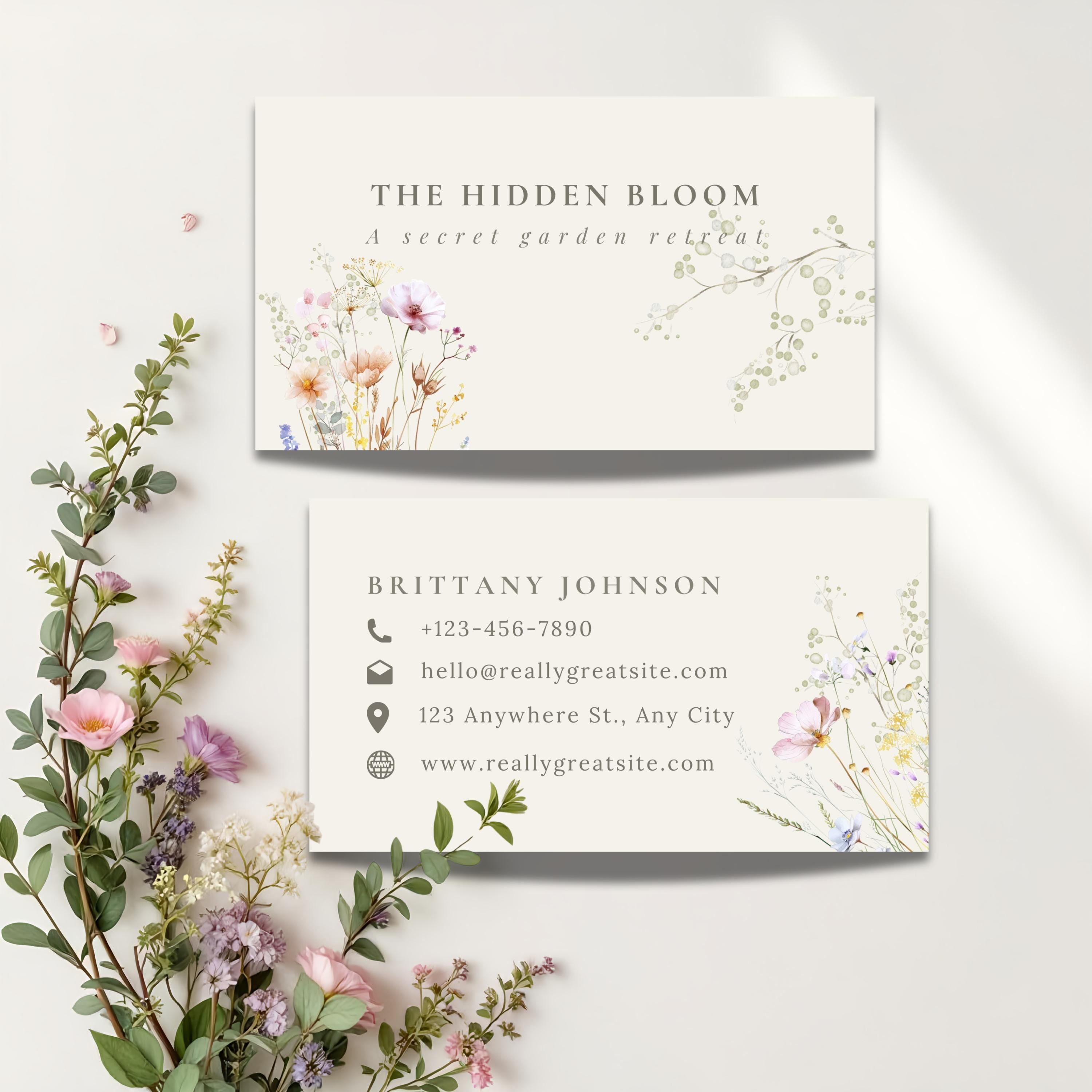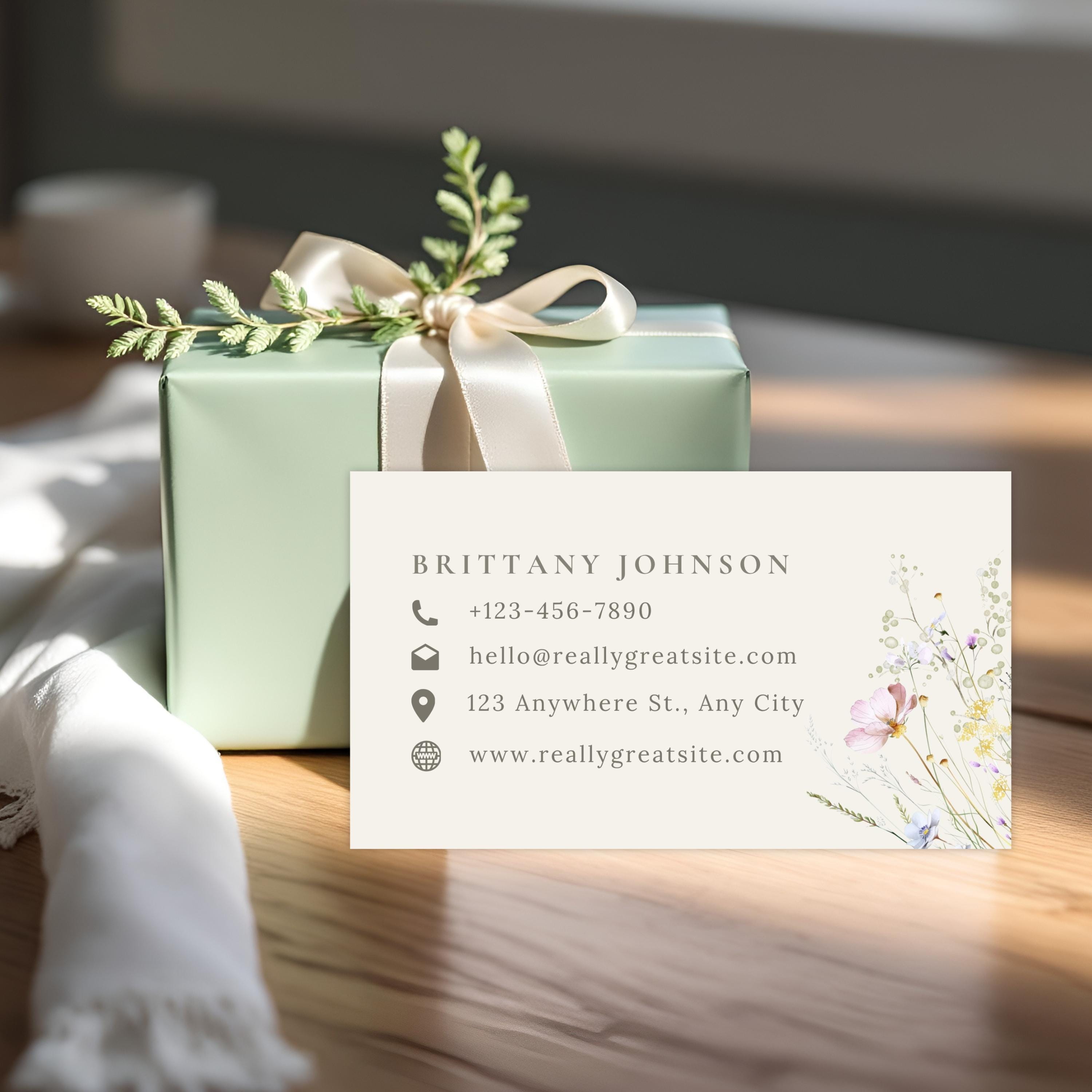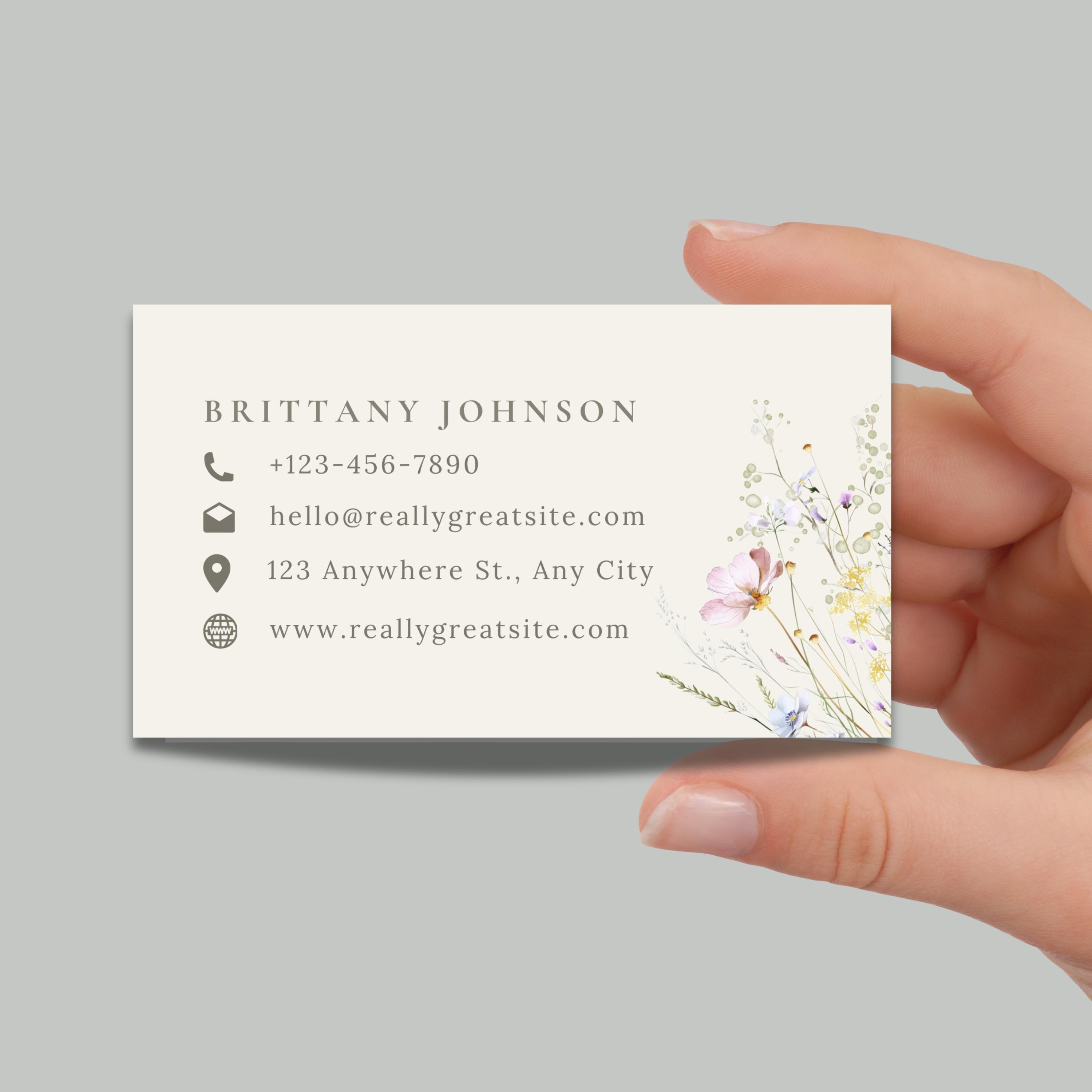 Make a lasting impression with these custom watercolor business cards, featuring a delicate wildflower design for a timeless, nature-inspired touch. The soft blush, lavender, and sage tones create an elegant, garden-style aesthetic — perfect for showcasing your brand with warmth and sophistication.