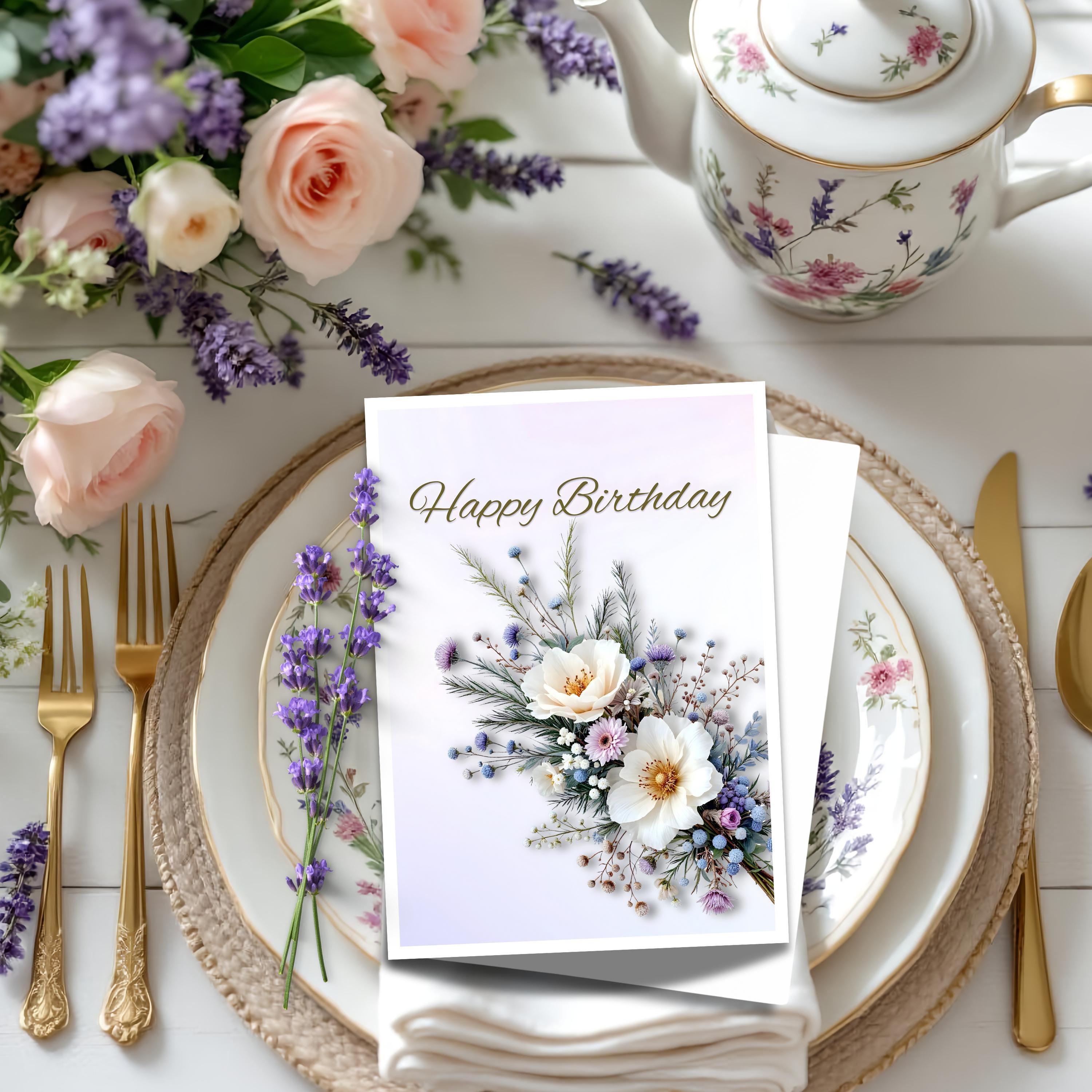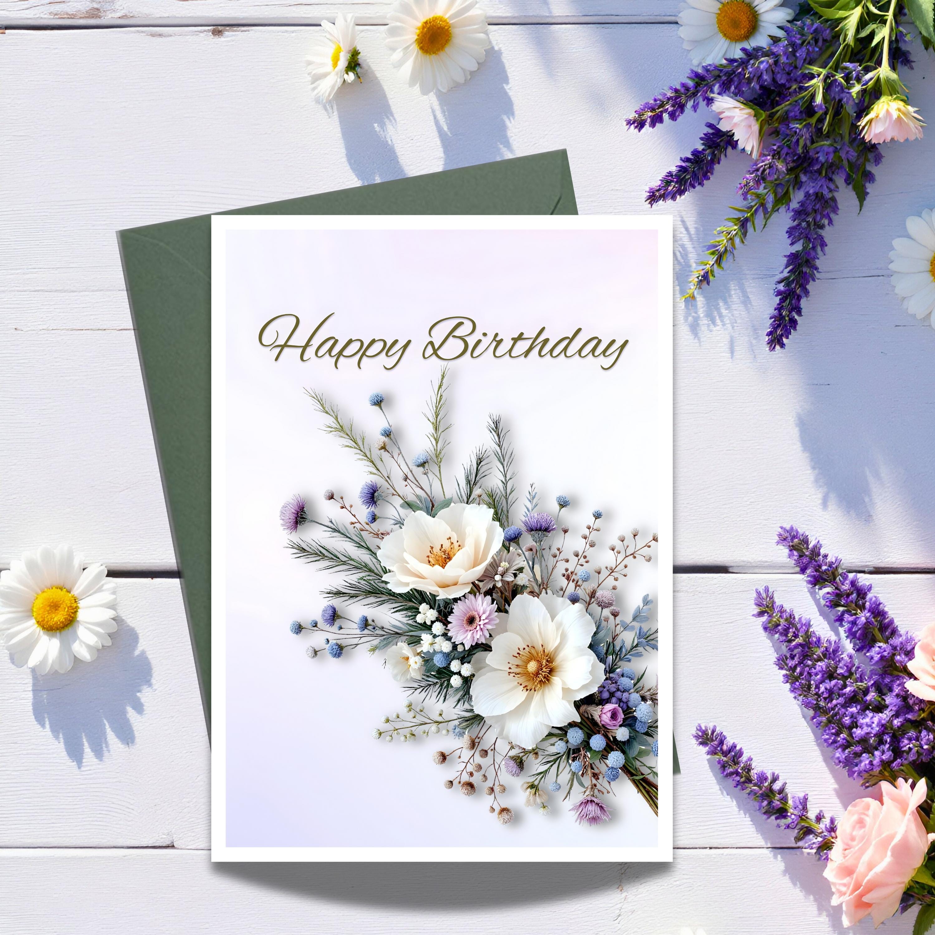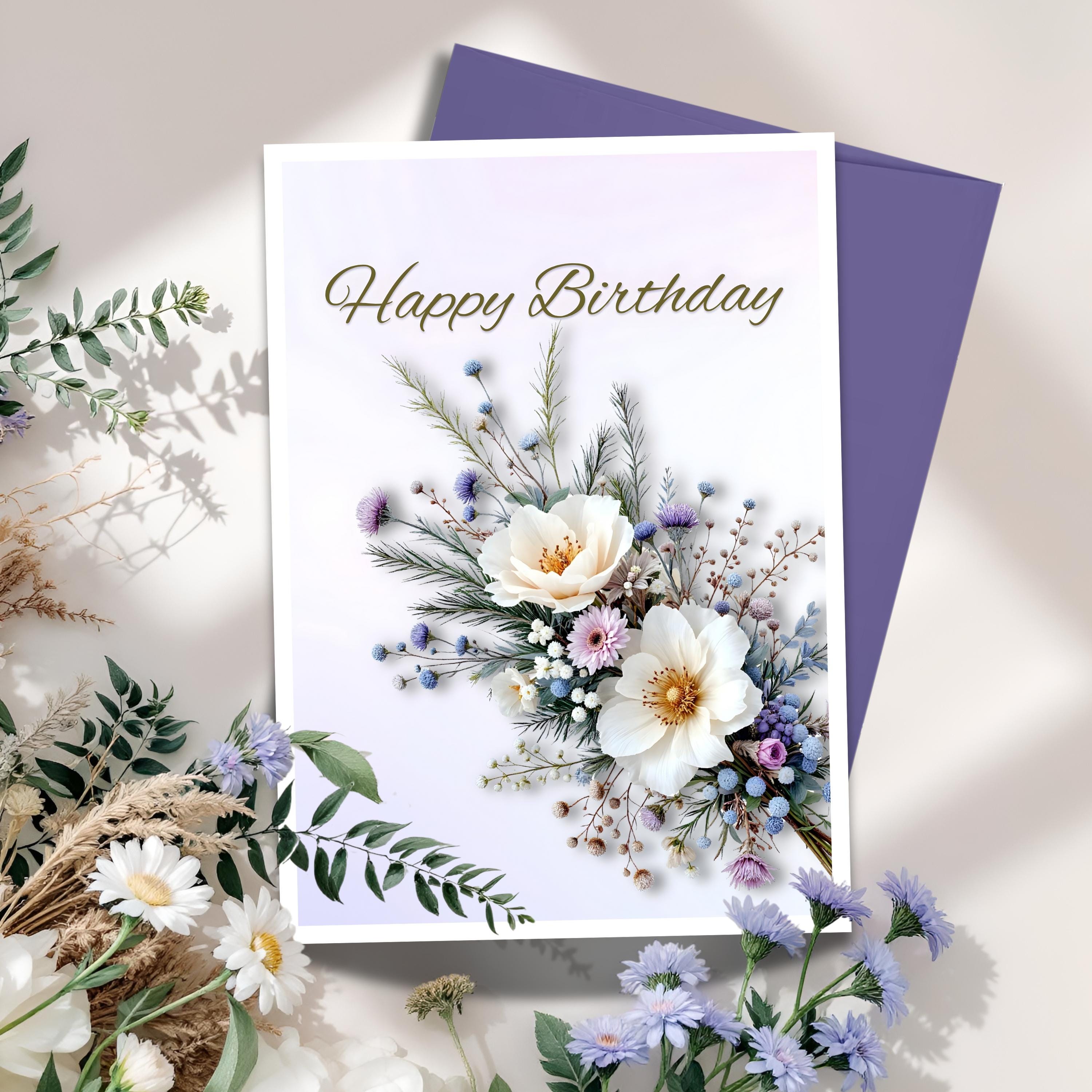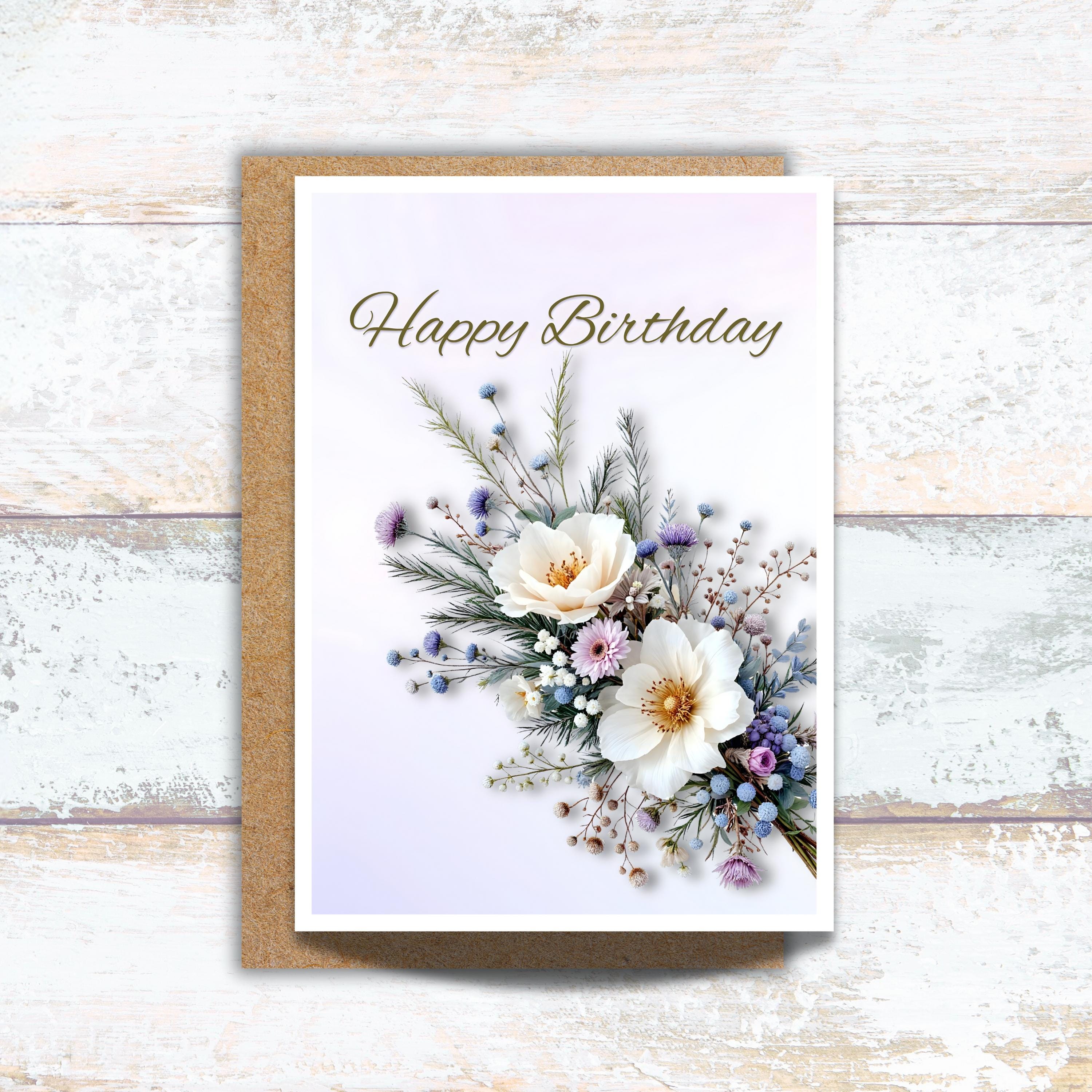 Celebrate the season with this Happy Birthday Winter Botanical Card, featuring soft white blooms, pine sprigs, and muted lavender accents. The rustic floral design captures the quiet charm of winter with a refined, nature-inspired aesthetic — perfect for thoughtful birthday wishes during the colder months.