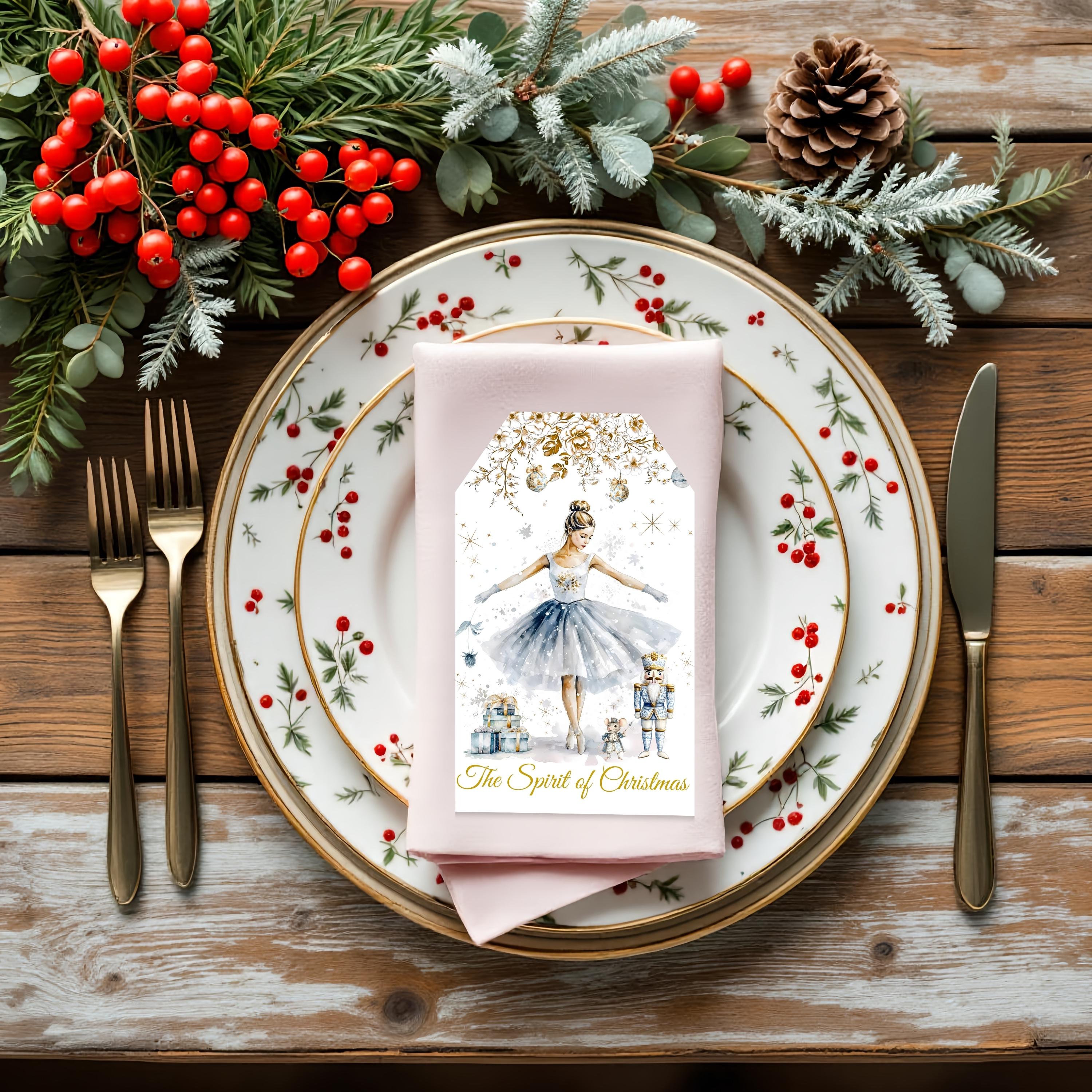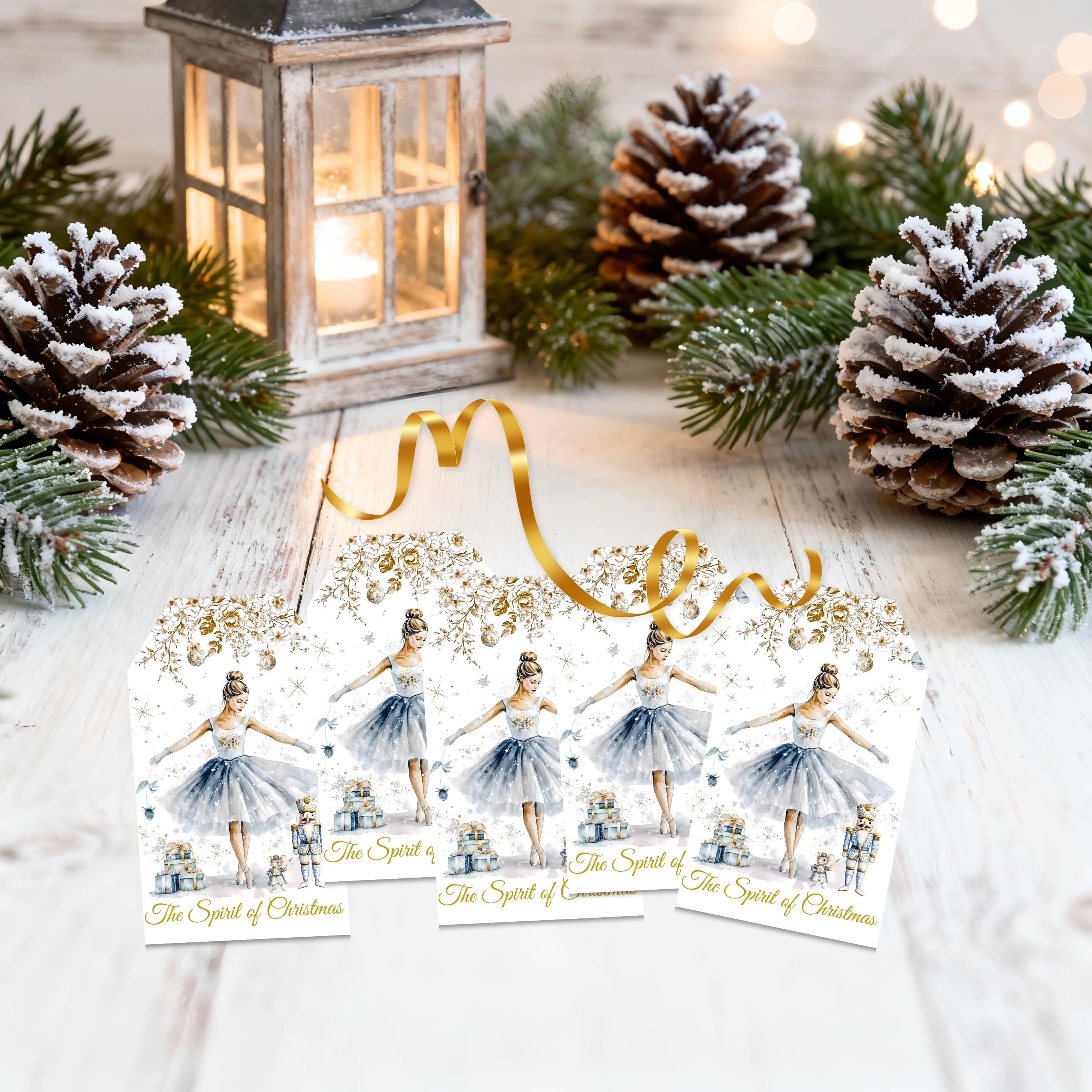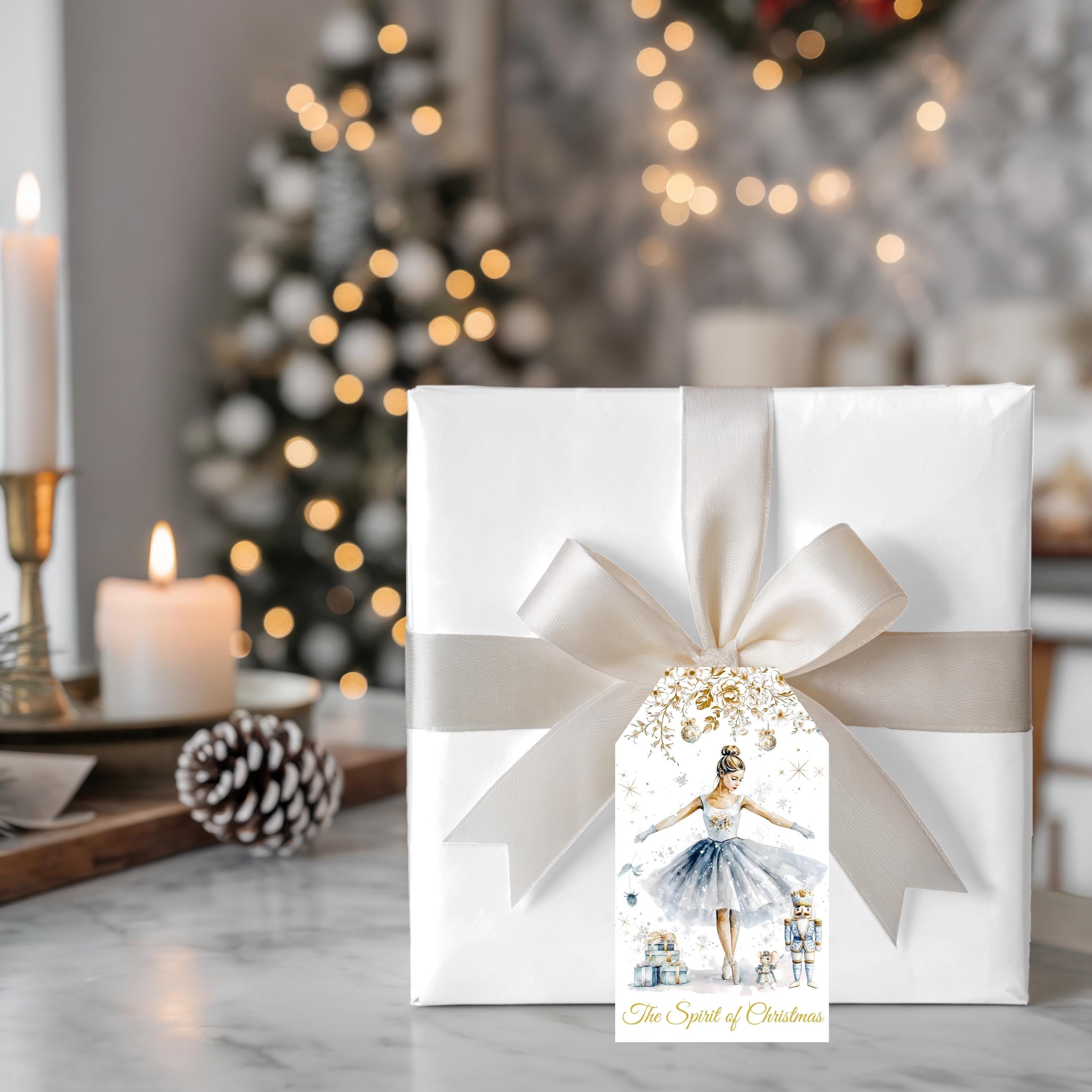 Celebrate the magic of the season with our elegant Ballerina Christmas Gift Tags, inspired by the timeless Nutcracker story. Each tag features a graceful watercolor ballerina surrounded by festive gold florals, soft blue accents, and enchanting holiday details — a perfect finishing touch for your beautifully wrapped gifts.