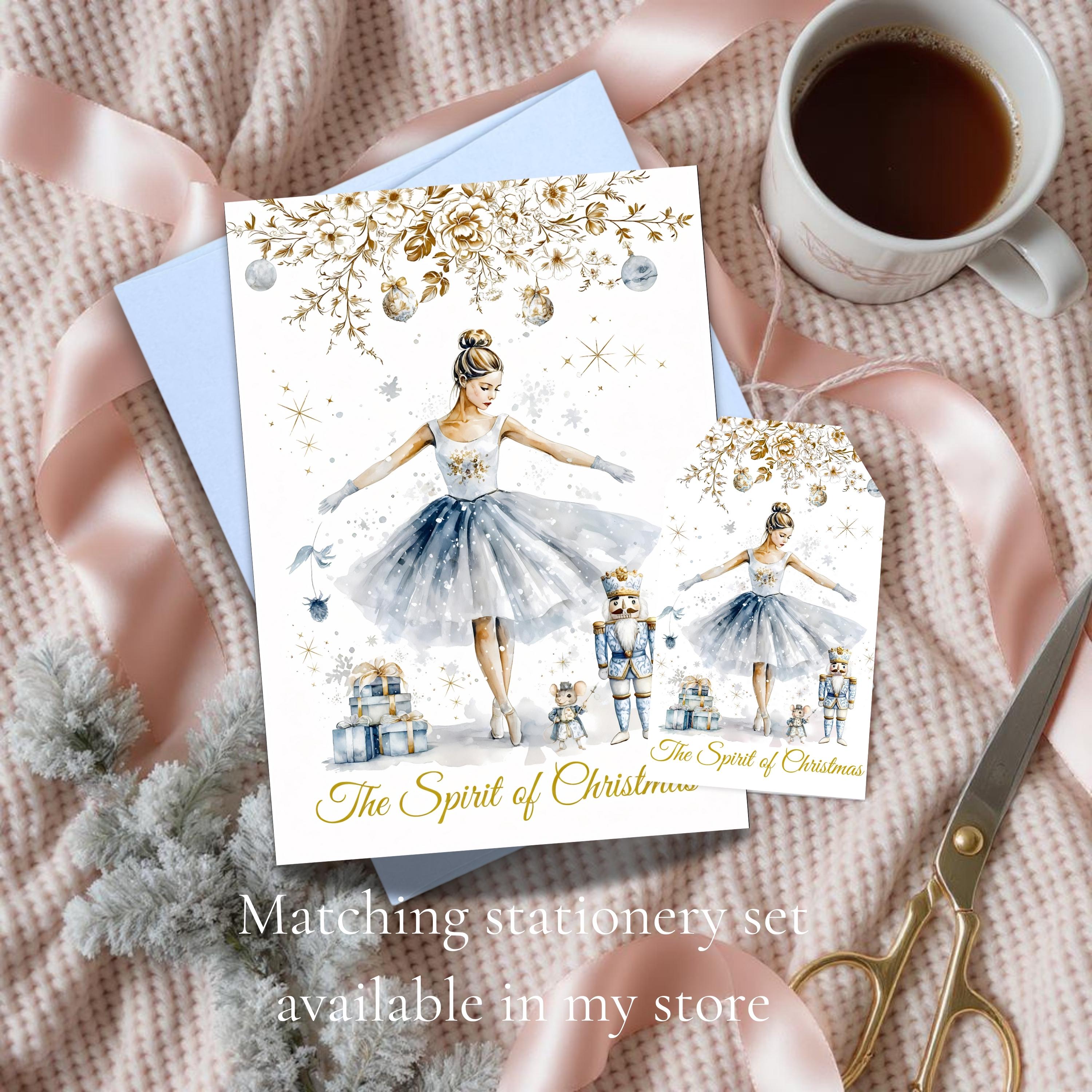 For matching greeting card, please follow this link:https://designsbymichaelaaz.etsy.com/listing/4356389220/nutcracker-ballerina-christmas-card